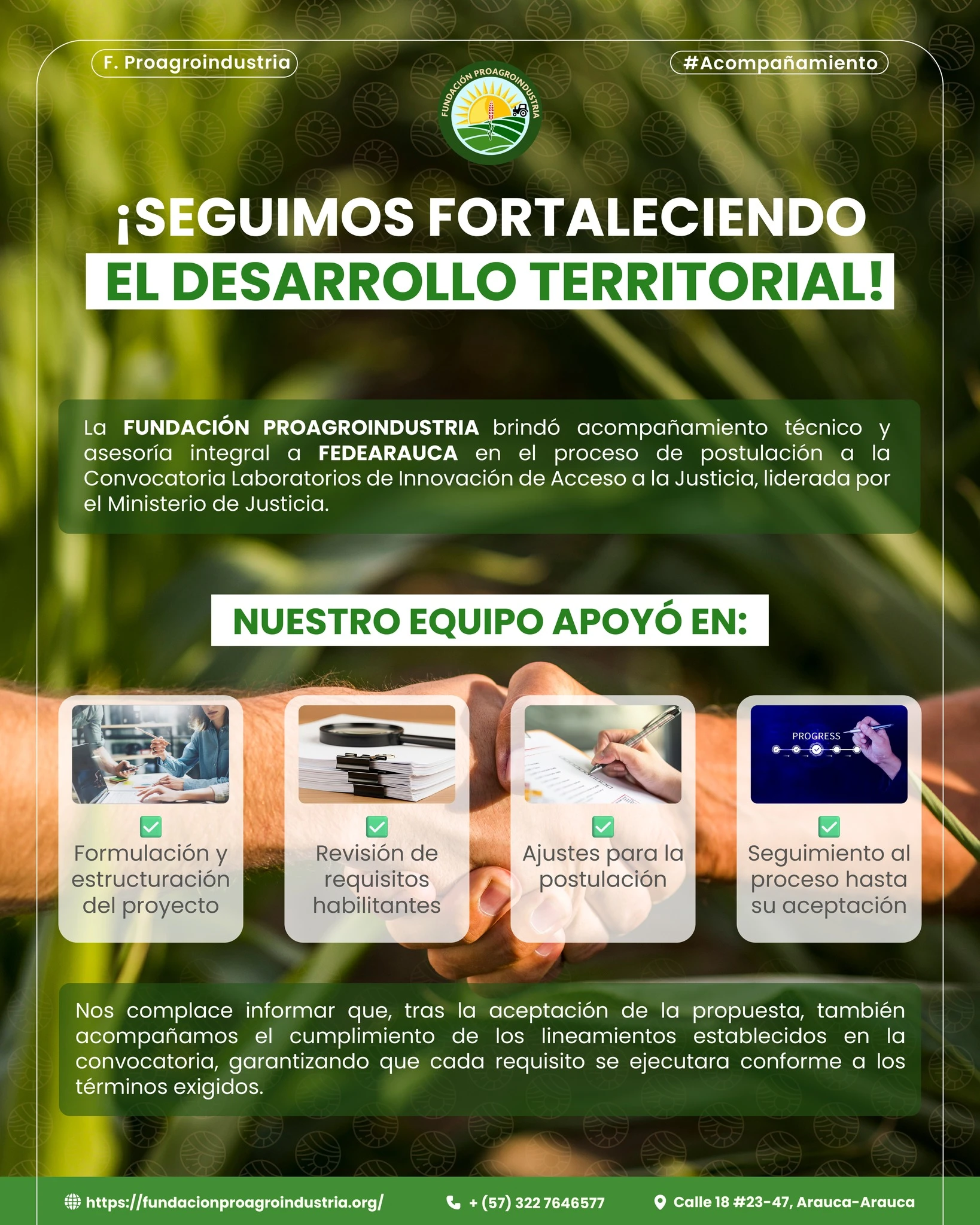 Con estos elementos, la Fundación Proagroindustria se posiciona como un actor clave en la transformación positiva del sector agropecuario en Arauca, contribuyendo al bienestar de las comunidades y al desarrollo sostenible de la región.